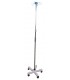 Robuste, le pied porte-sérum comporte un tube en acier inox et un support de crochets en ABS.