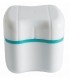 Cette boîte est équipée d'un large panier ajouré et amovible pour disposer et enlever le dentier sans se mouiller les doigts.