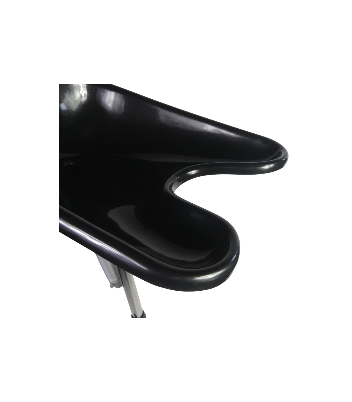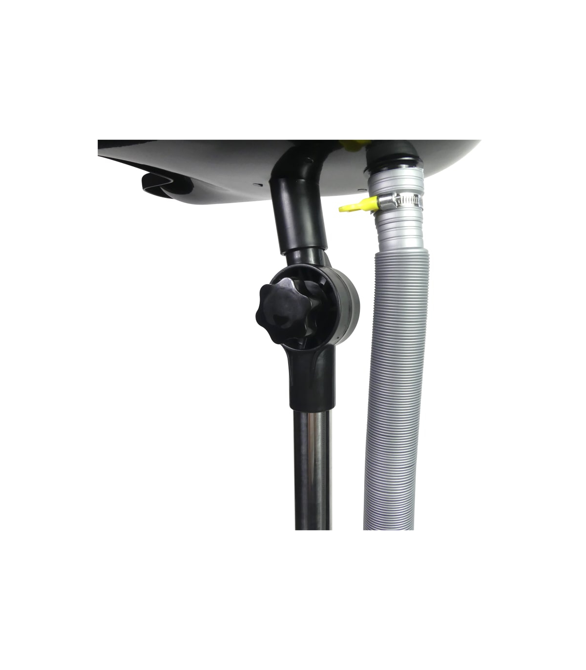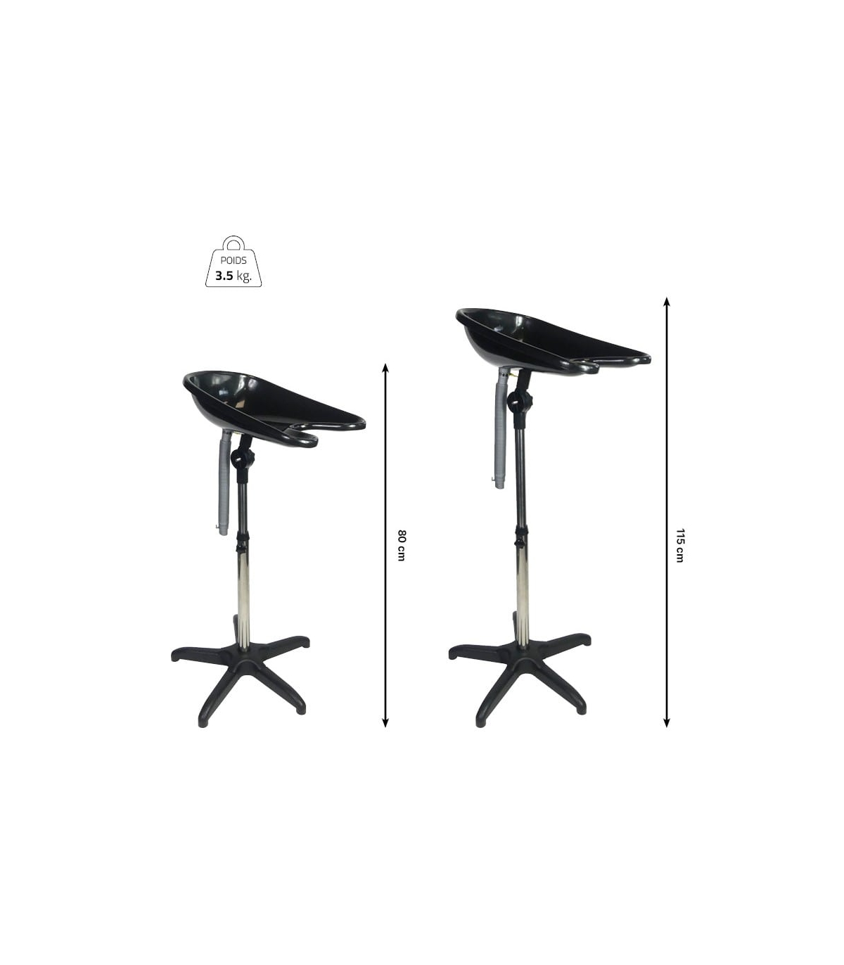 Le lavabo de coiffure noir ne comprend pas de récipient, il est donc nécessaire de prévoir un seau pour l’évacuation de l’eau.