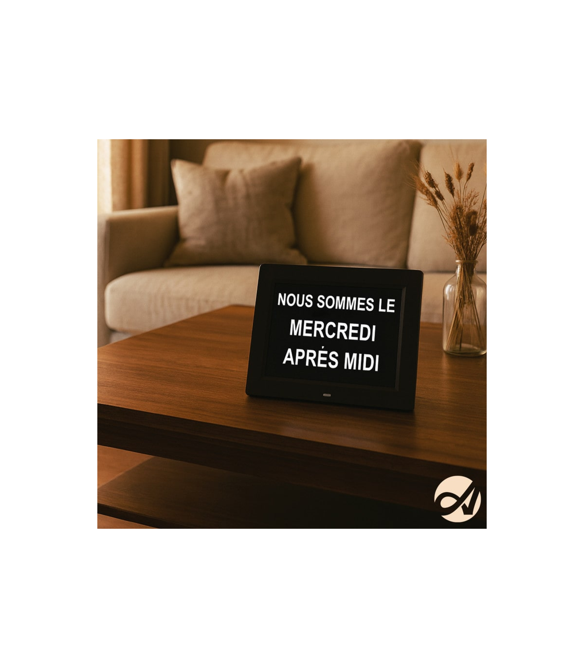 Cet accessoire est destiné aux personnes âgées, aux personnes désorientées ou atteintes de troubles de la mémoire (Alzheimer) ou tout simplement pour ceux qui veulent un affichage complet, clair et visible à distance.