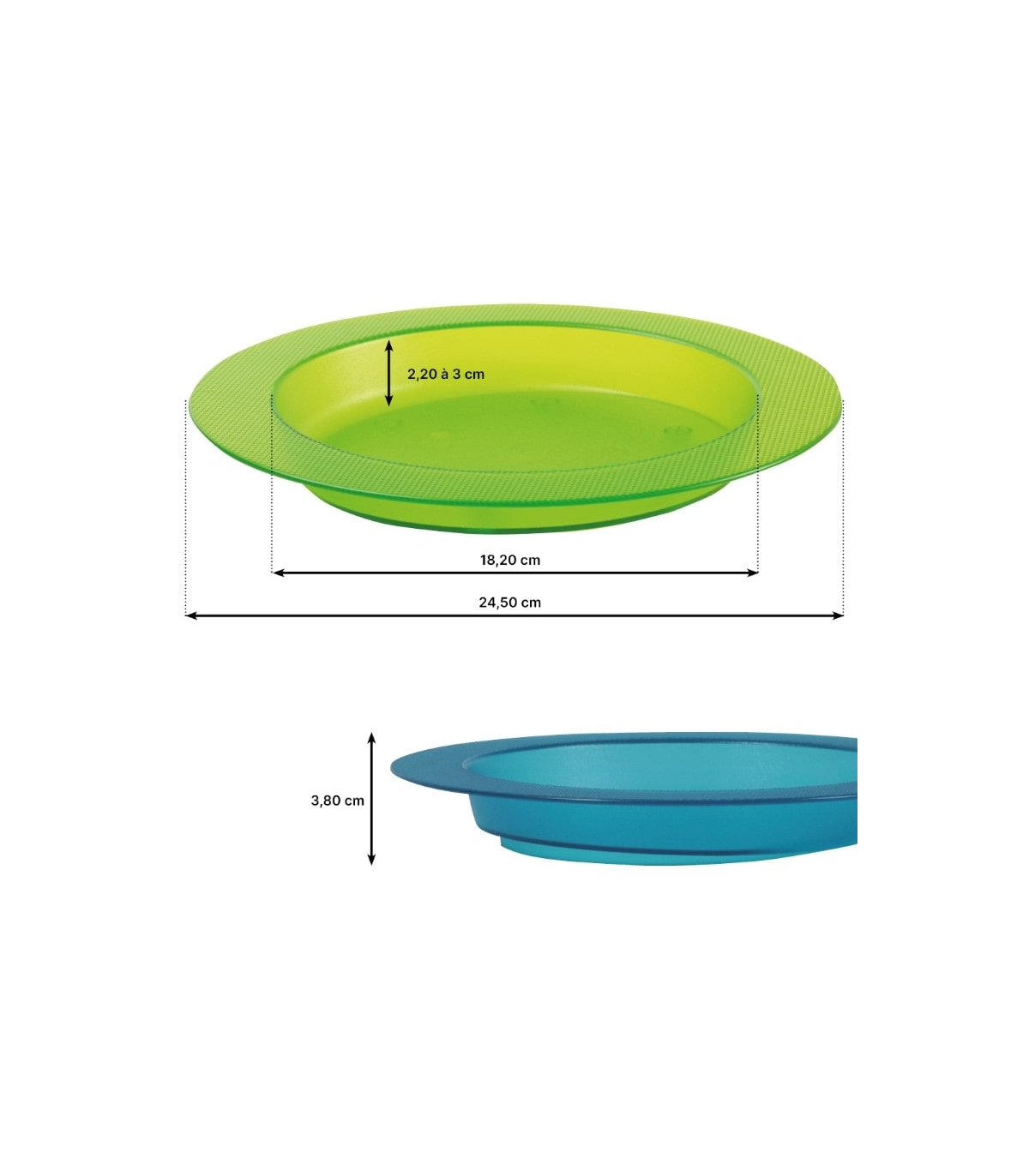 Grâce à des rebords hauts et droits, l'assiette permet de ramener facilement les aliments sans avoir à faire trop de mouvements.