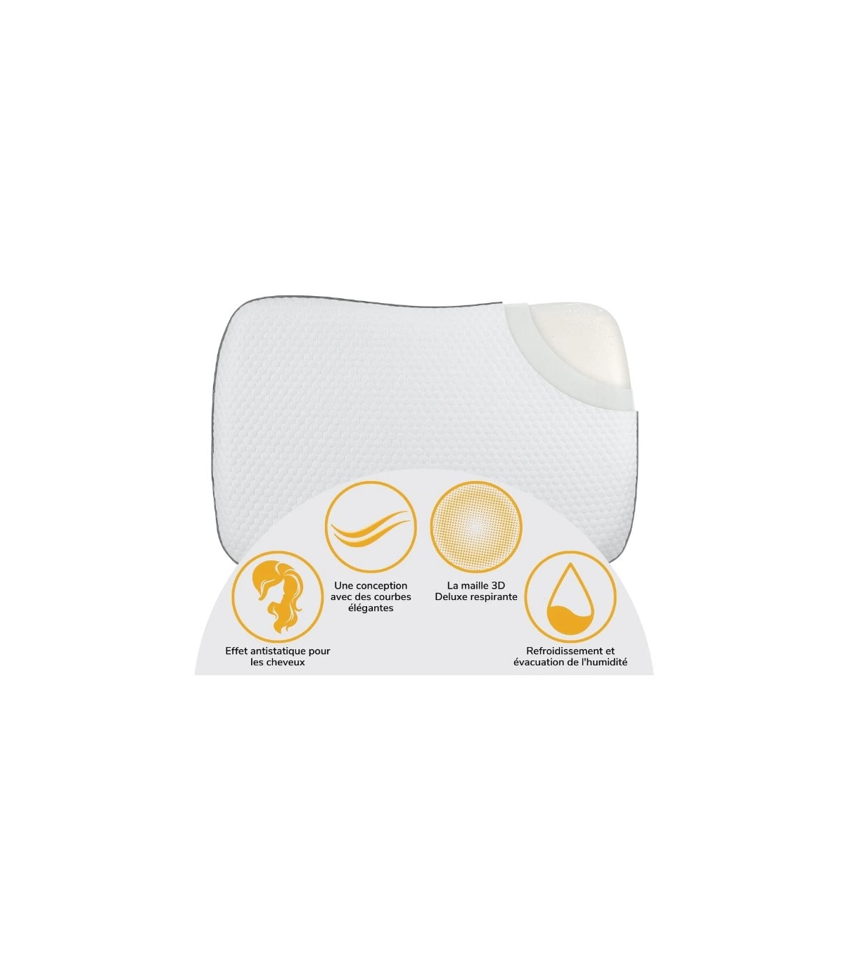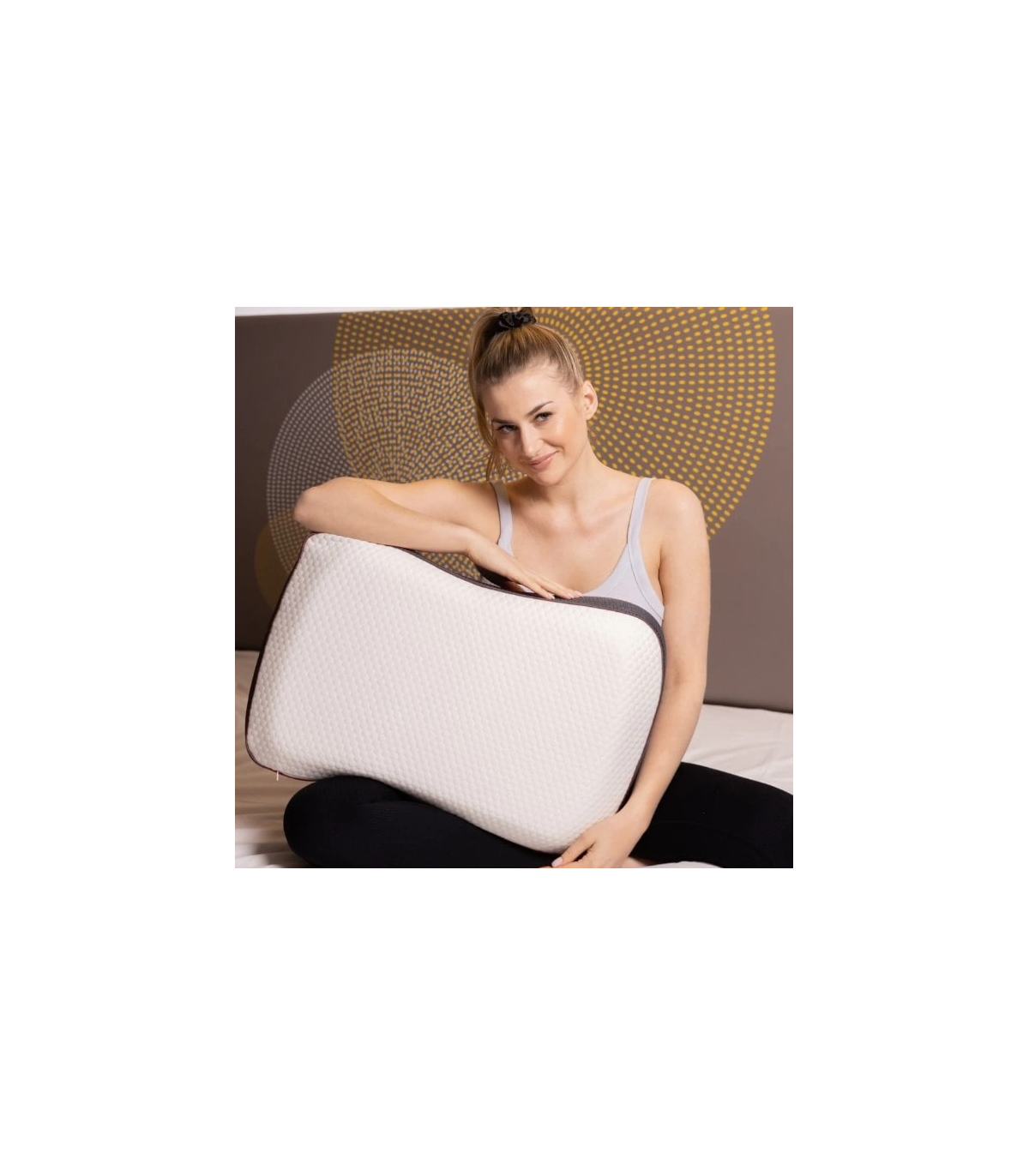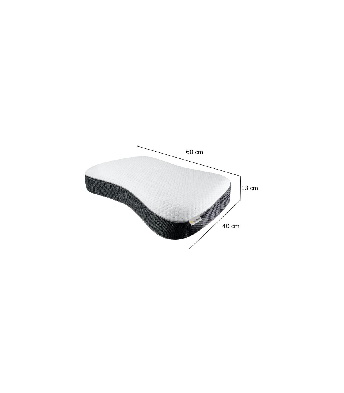 Son design ergonomique “Confort Épaule”, avec un creux central et des contours étudiés, favorise l’alignement naturel de la colonne cervicale tout en offrant un soutien efficace, que l’on dorme sur le dos ou sur le côté.