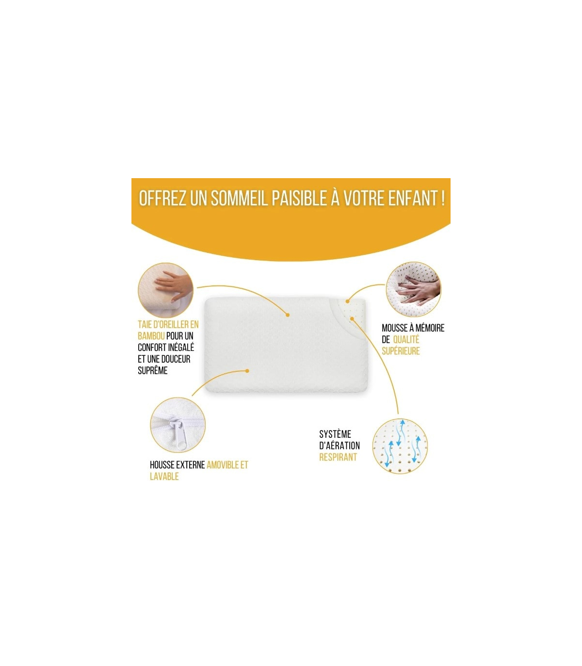 L'oreiller à mémoire de forme Inphysio proposé à un prix attractif convient aux enfants dès l’âge de 2 ans, pour un sommeil confortable et adapté à leur croissance.