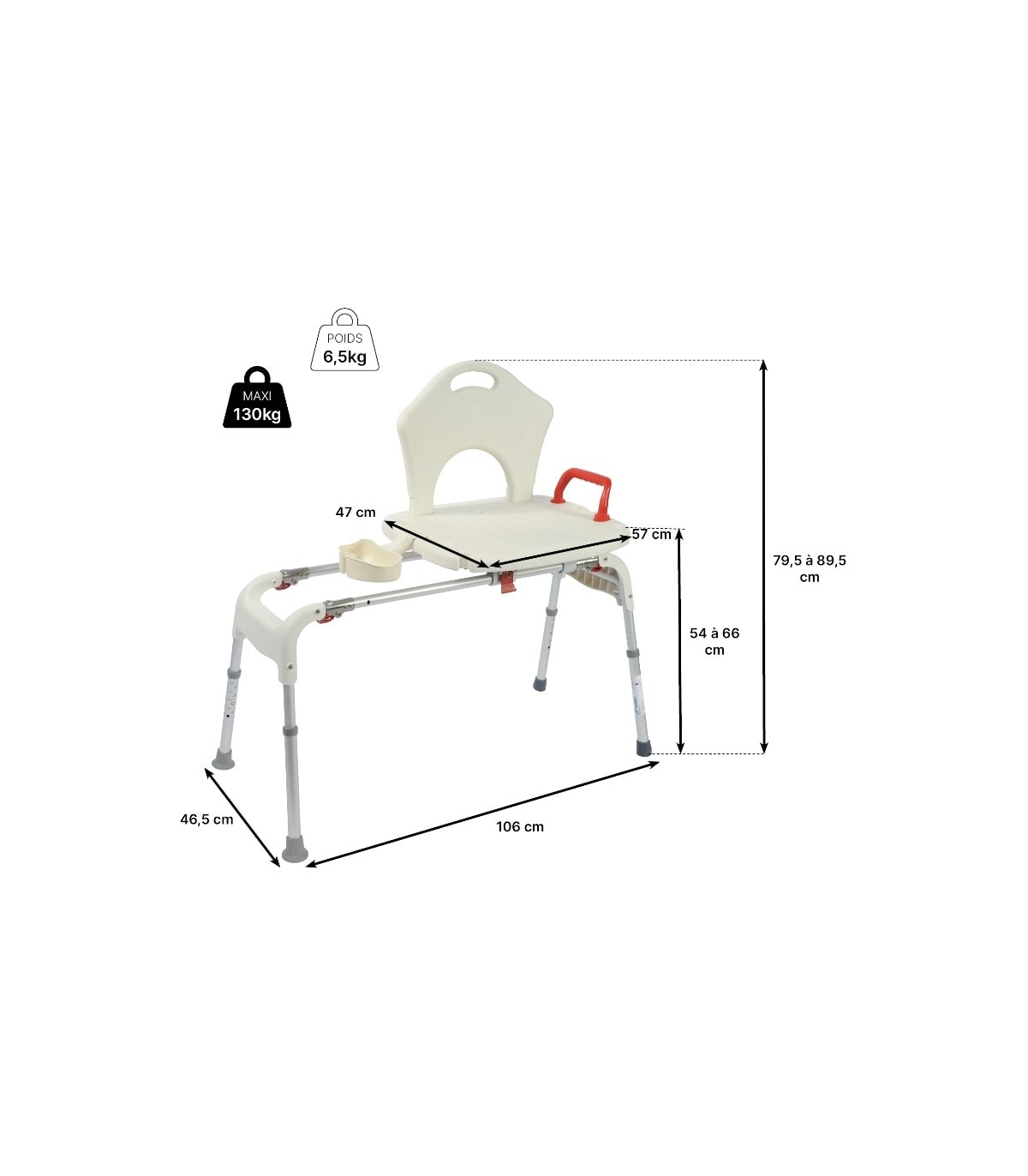 Le banc de transfert baignoire Slide est un produit innovant conçu pour faciliter le transfert des personnes à mobilité réduite (PMR) dans leur baignoire, sans effort ni danger. Ce siège de transfert pour personne âgée permet à l'utilisateur de s'asseoir en toute sécurité à l’extérieur de la baignoire, puis de glisser vers l’intérieur sans avoir à se lever. Grâce à son système de transfert, il offre un appui stable et confortable, idéal pour les personnes ayant des difficultés de mobilité.