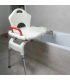 Grâce à son mécanisme de glissement, le transfert vers le centre de la baignoire se fait sans effort. L'utilisateur reste assis pendant toute la manœuvre, réduisant ainsi les risques de chute.
