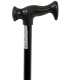 Pour une meilleure prise en main, la canne de marche fixe pour personne âgée de couleur noire comporte une poignée en forme de T munie d'un bec.