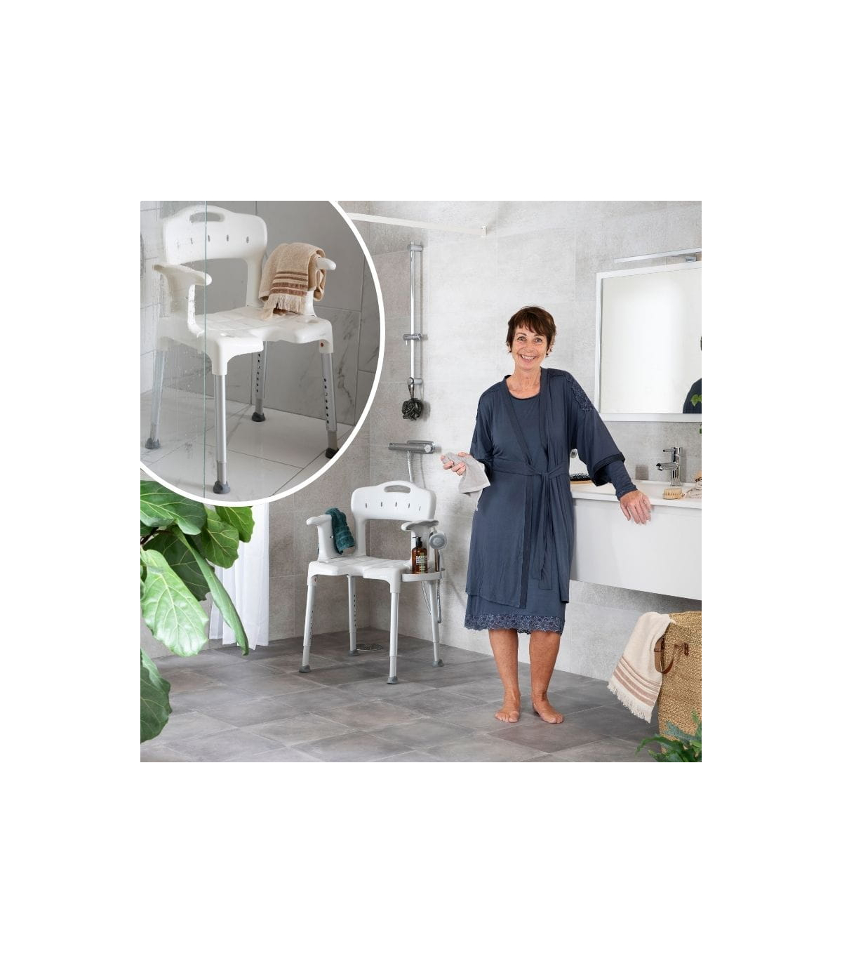La chaise de douche avec accoudoirs Etac Swift est un produit médical conçu pour améliorer la sécurité et le confort des personnes âgées ou à mobilité réduite lors de la toilette. Légère, stable et réglable en hauteur, elle s’adapte à toutes les morphologies et s'intègre facilement dans n’importe quelle salle de bain ou douche, grâce à ses dimensions pratiques et ses coloris discrets.