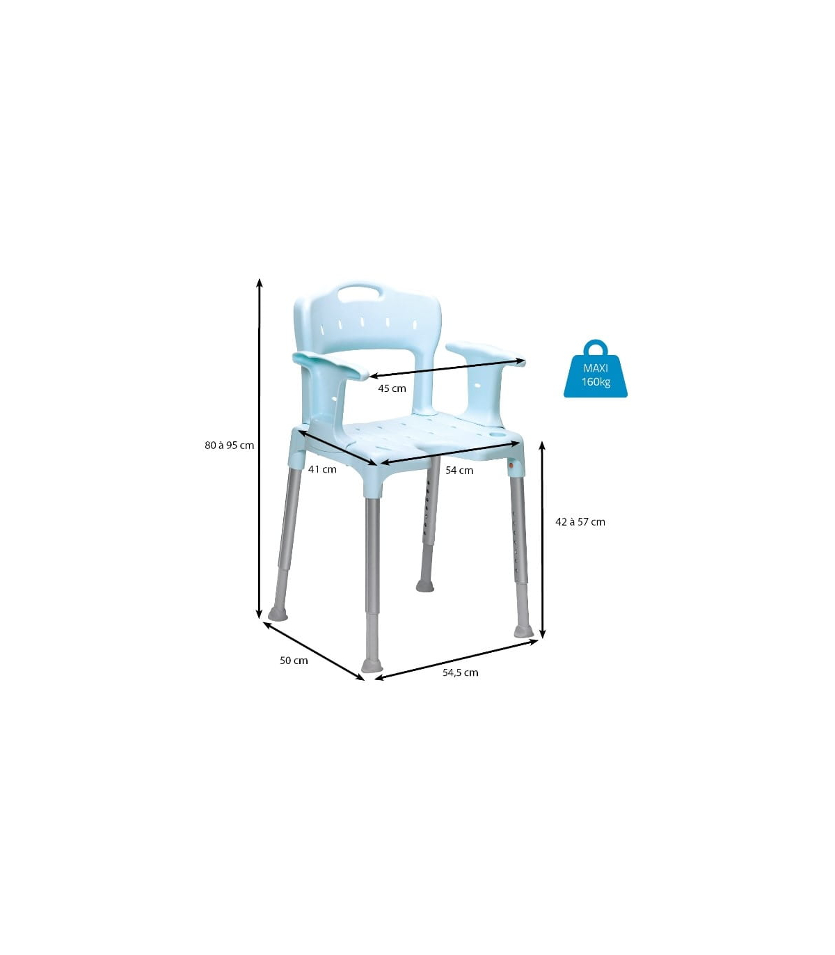 Caractéristiques de la chaise de douche réglable en hauteur Etac Swift
