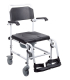 Le fauteuil de douche dispose de 4 roues pivotantes (diamètre 125 mm) pour faciliter le déplacement du patient.