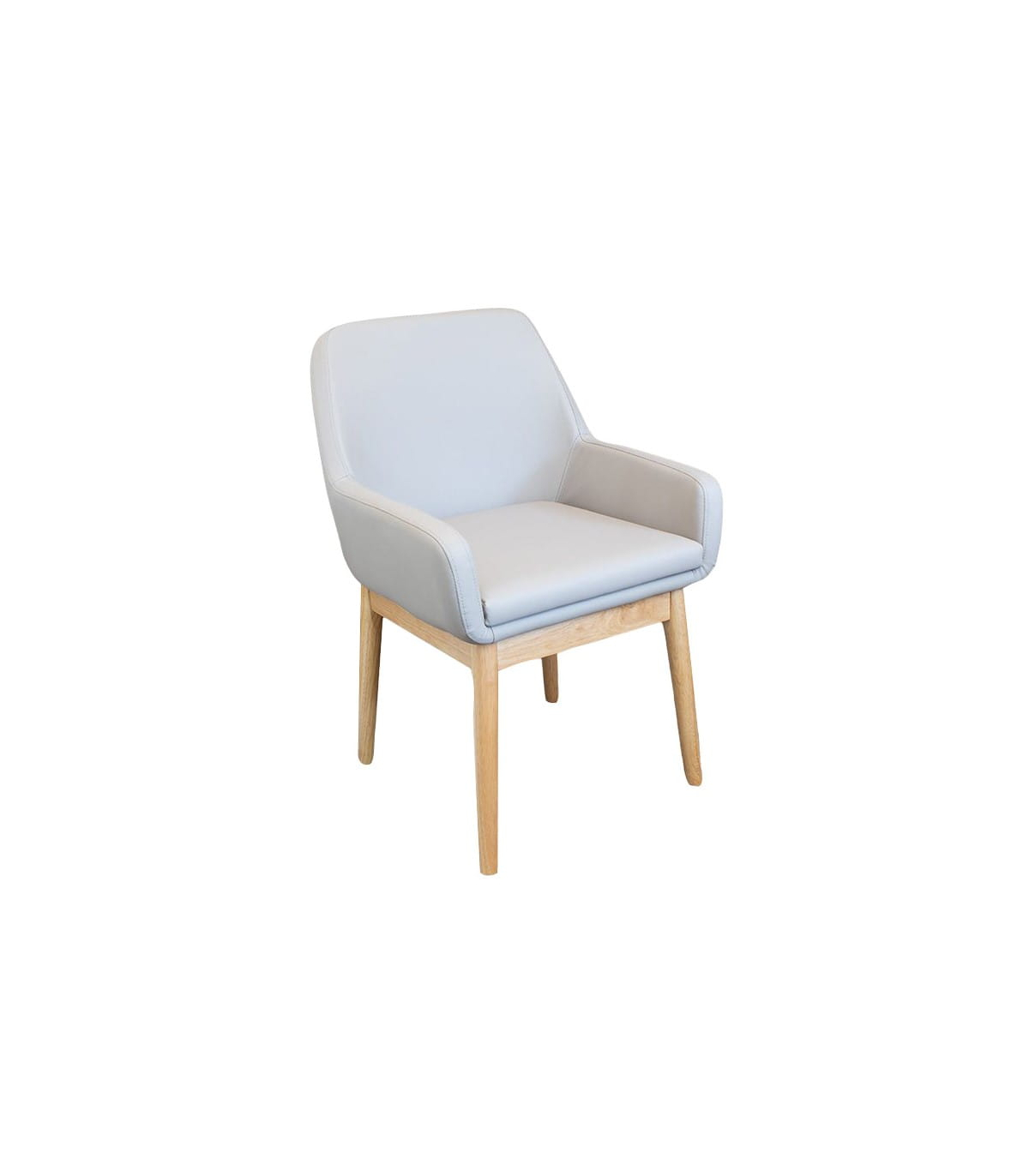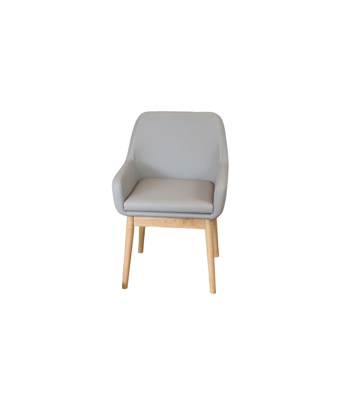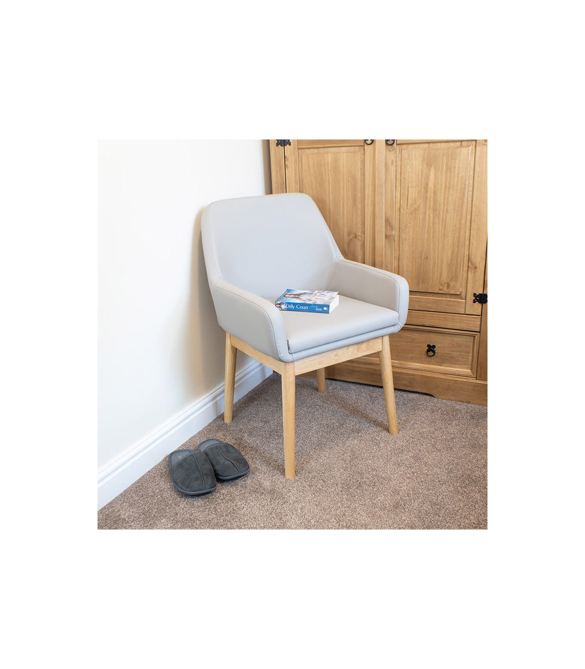 Le fauteuil de toilette au look design s'adaptera parfaitement à votre intérieur grâce à son piétement en bois massif et son revêtement gris résistant au feu.