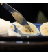 La lame en acier inoxydable comporte une extrémité "fourchette" 4 piques afin d'attraper les aliments facilement.