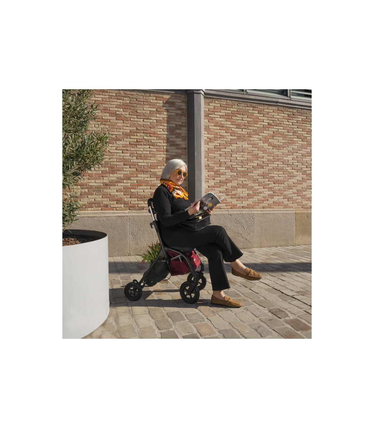 - Autonomie et confort : Il favorise l’indépendance de l’utilisateur en combinant soutien à la marche et transport pratique, tout en permettant de se déplacer en toute sécurité.