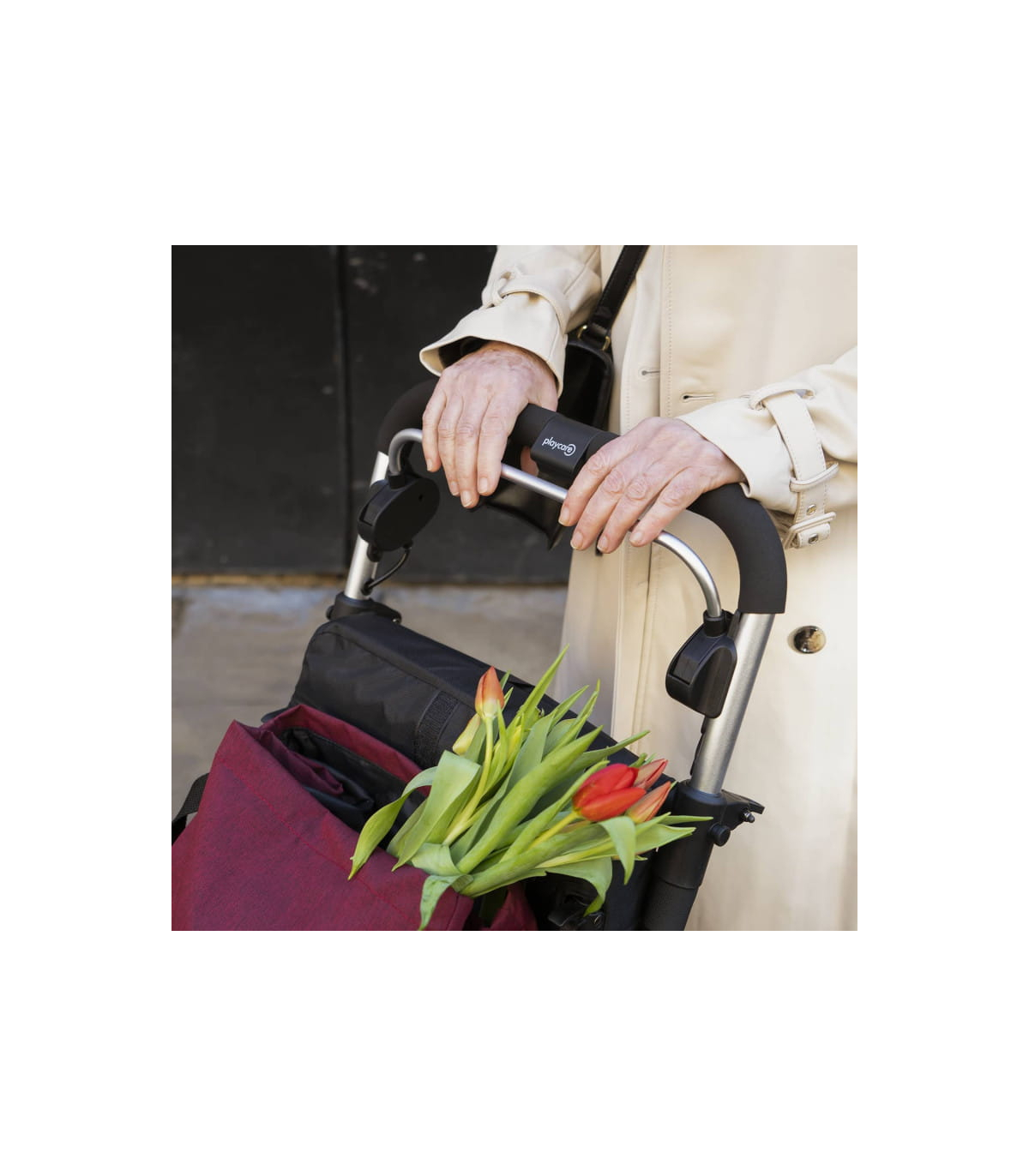 Ce rollator avec assise dispose d’un frein à main à trois positions (libre, verrouillage et verrouillage sécurisé) offrant une conduite sûre et contrôlée.