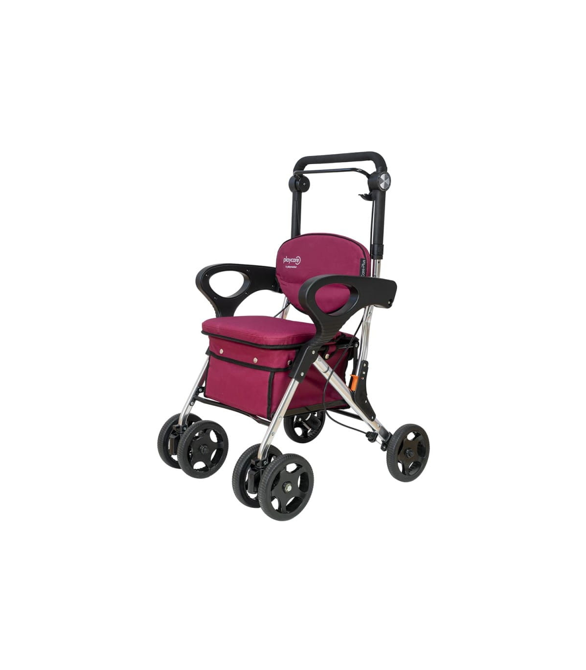 Le déambulateur chariot de courses 4 roues à pousser Care Plus Playcare possède un cadre en aluminium léger et robuste, pèse 6 kg et peut supporter un poids utilisateur maximal de 100 kg, alliant solidité et maniabilité.