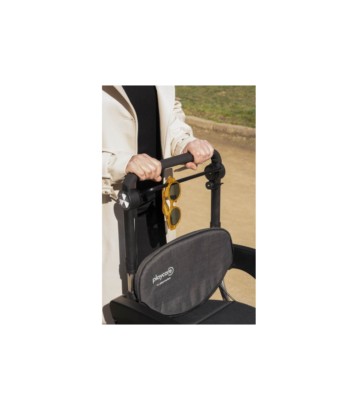 Les détails techniques du déambulateur chariot de courses 4 roues à pousser avec siège Care Plus Playcare
