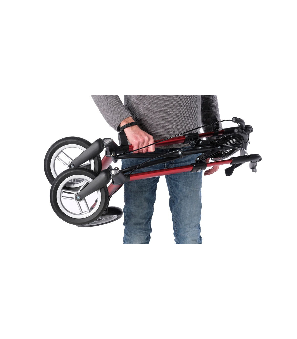 Son cadre pliant en aluminium permet un rangement facile et un transport pratique. Il reste stable et résistant, tout en étant légèrement plus léger qu’un rollator classique (environ 7,6 kg).