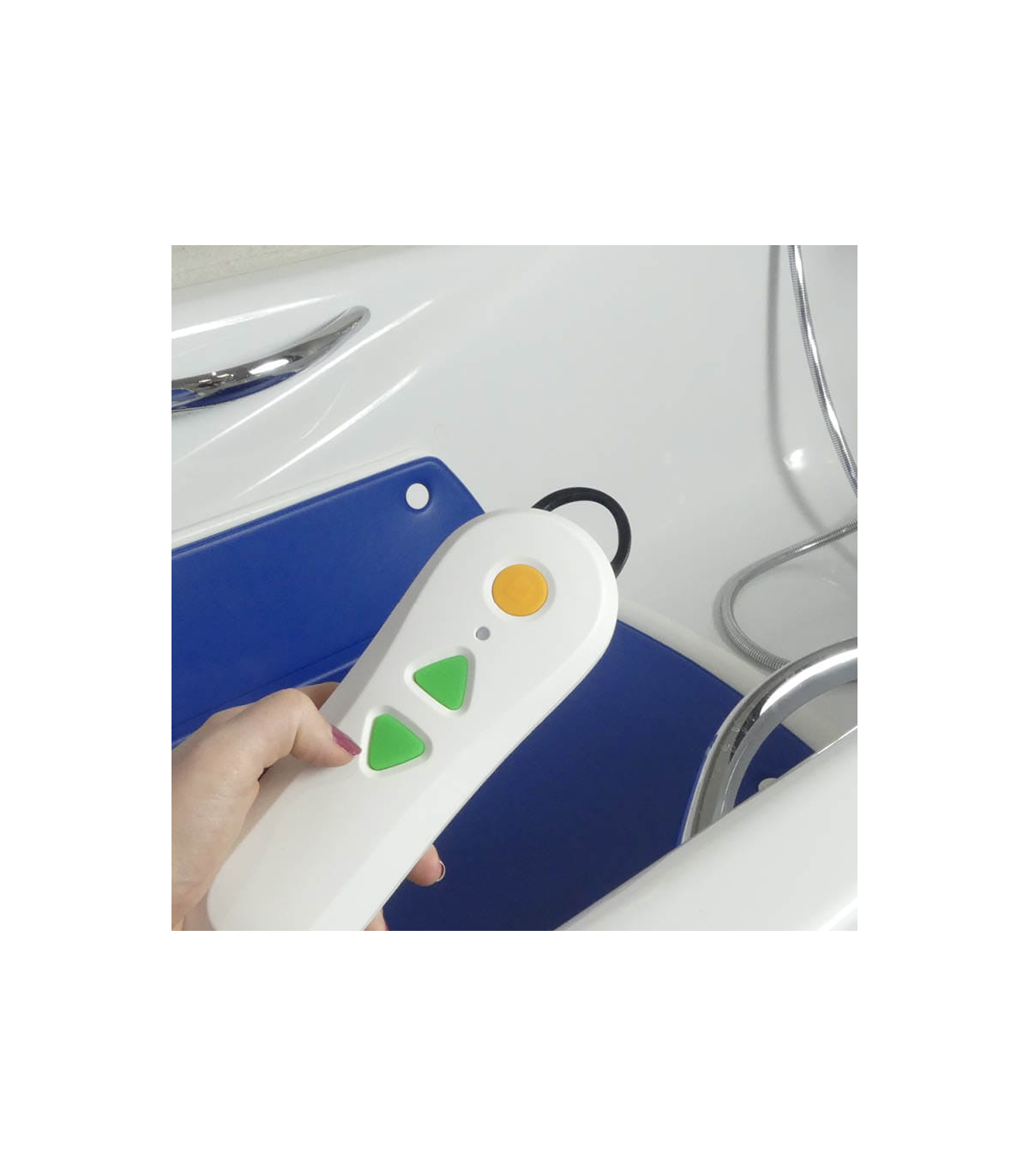 L'élévateur de bain Galapagos est équipé d'une batterie lithium-ion située dans la télécommande. Attention, si la batterie de la télécommande n'est pas suffisamment rechargée, l'élévateur de bain ne descend plus. Il permet uniquement la remontée du siège élévateur électrique PMR.