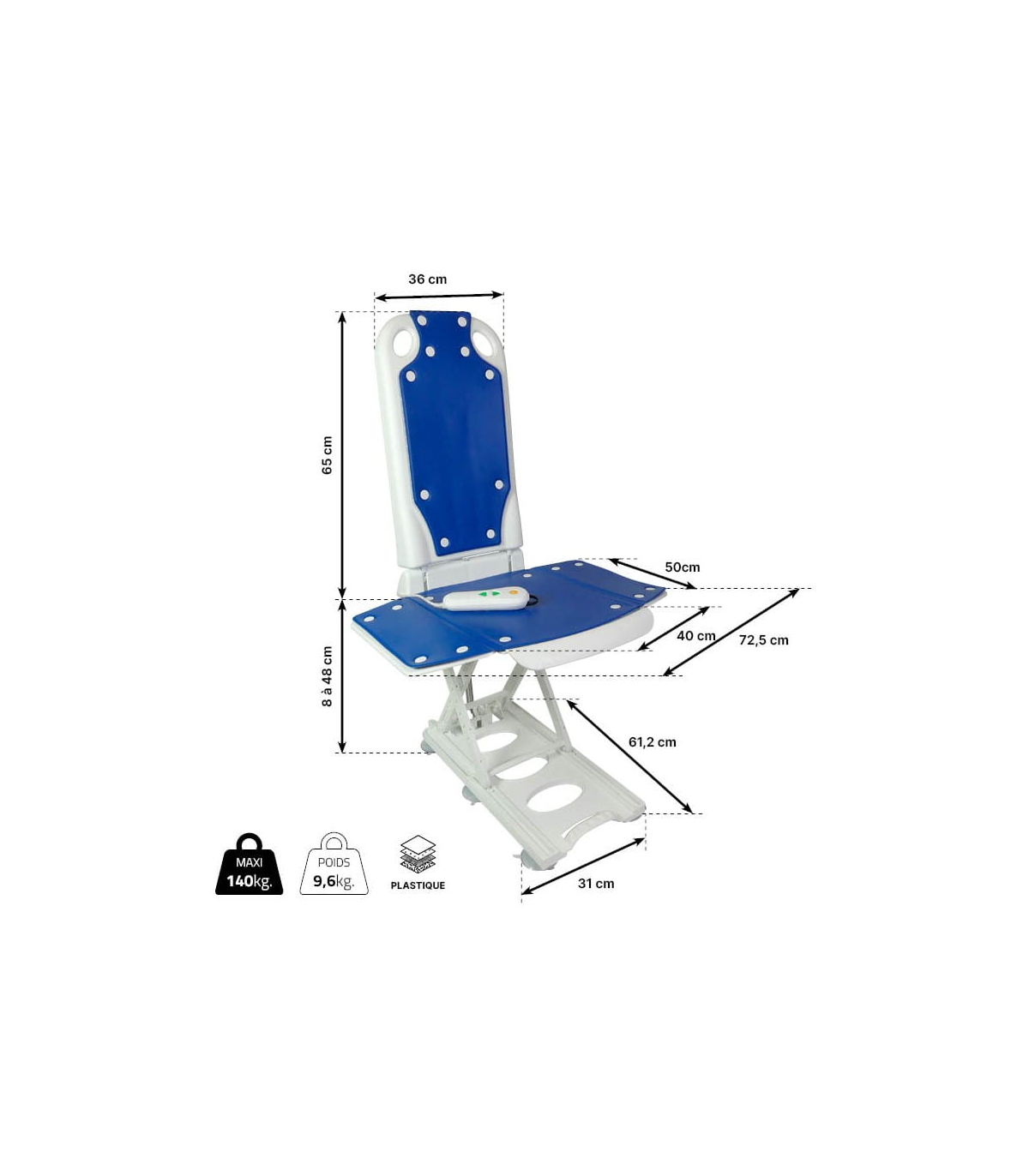 Caractéristiques du siège élévateur de bain électrique Galapagos