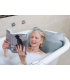 Le siège élévateur de bain gonflable Airflo est livré avec un compresseur à basse pression qui s'installe à l'extérieur du bain et ne comporte aucun câble électrique immergeable.