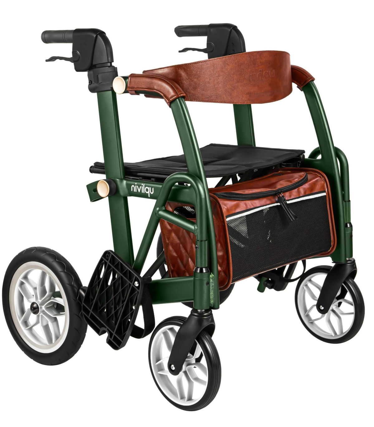 Les roues sur ce produit médical d'aide à la mobilité mesurent 20 cm à l’avant et 30 cm à l’arrière, offrant à la fois stabilité et maniabilité lors des déplacements.