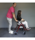 Pour le changer en fauteuil de transfert, il suffit simplement de déplier la palette repose-pieds et de changer le sens du dossier.