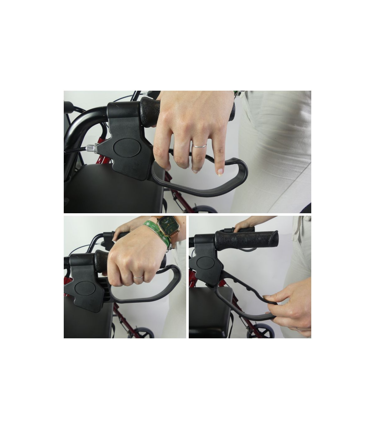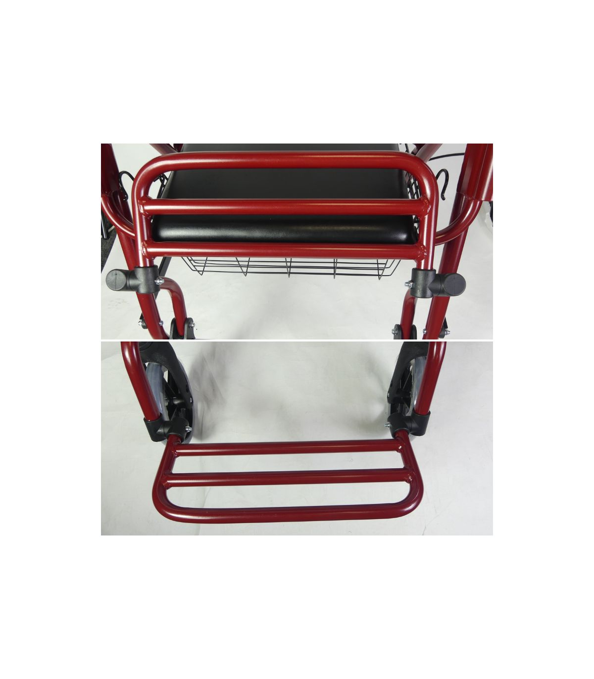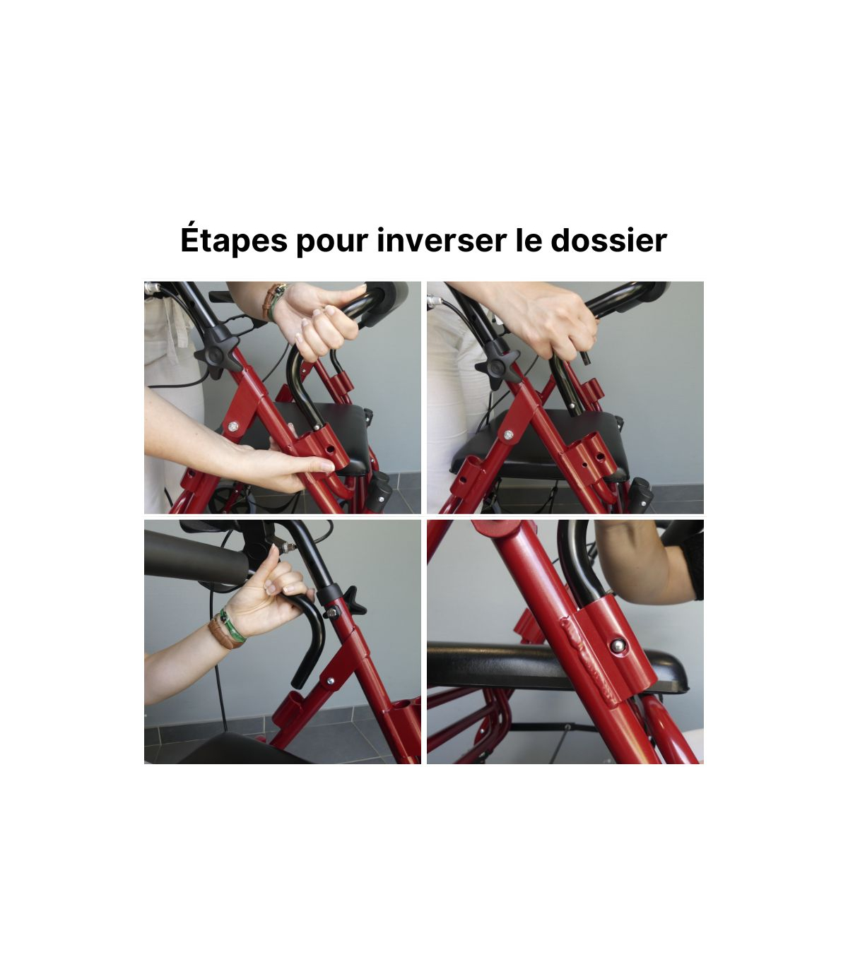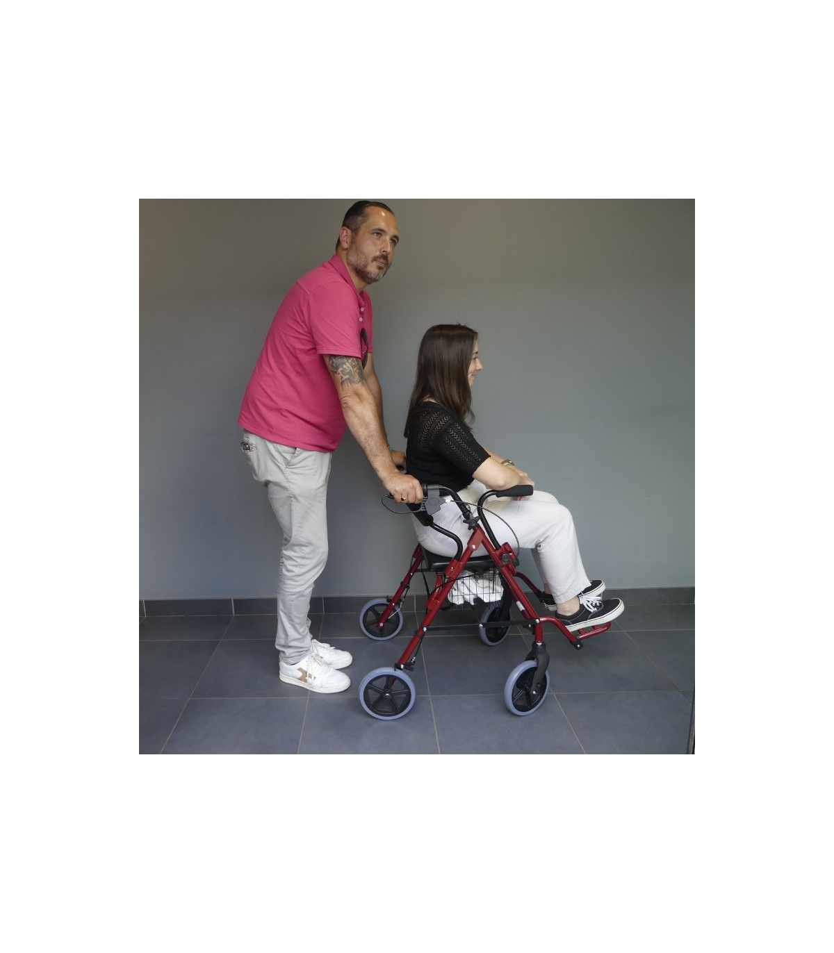 Ce dispositif médical est à la fois un rollator 4 roues mais aussi un fauteuil de transfert. Cela est très pratique lorsque le patient se sent fatigué.