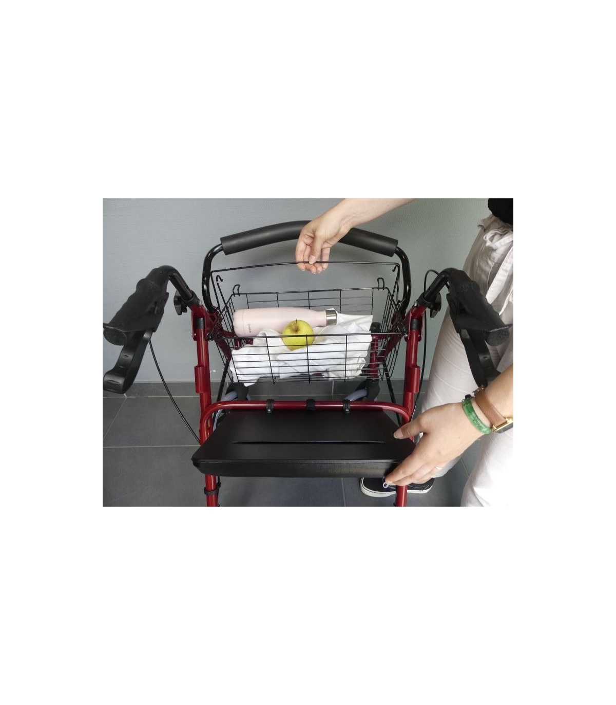 Le déambulateur roulant Victor est livré avec un panier qui se place en dessous de l'assise pour emporter toutes sortes d'objets avec vous.