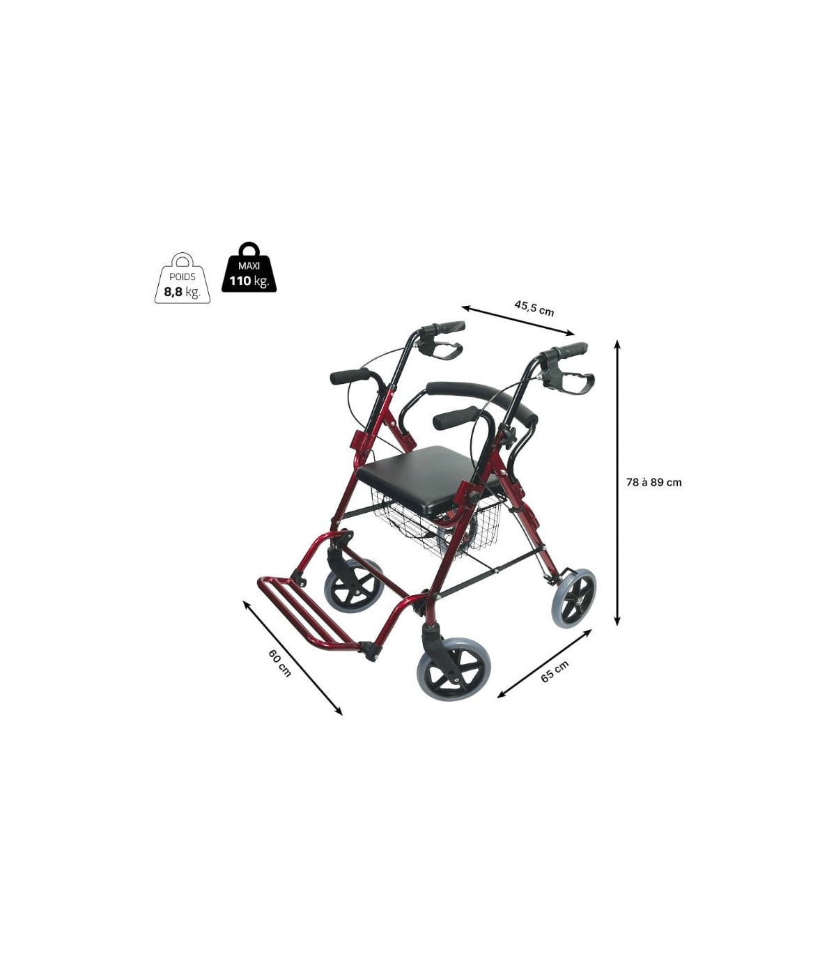Ce déambulateur roulant est léger avec un poids de seulement 8,8 kg. De plus, il est également très robuste puisqu'il peut supporter jusqu'à 110 kg.