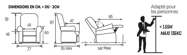 ATTENTION: Avant toute commande, il est important de bien prendre les mesures (largeur d'assise / profondeur d'assise / hauteur d'assise) afin de définir la taille de votre fauteuil relax électrique senior.