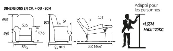 ATTENTION: Avant toute commande, il est important de bien prendre les mesures (largeur d'assise / profondeur d'assise / hauteur d'assise) afin de définir la taille de votre fauteuil releveur.