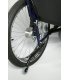 La chaise roulante handicapée est munie de protèges vêtements renforcés ainsi qu'une sangle cale talons réglable.