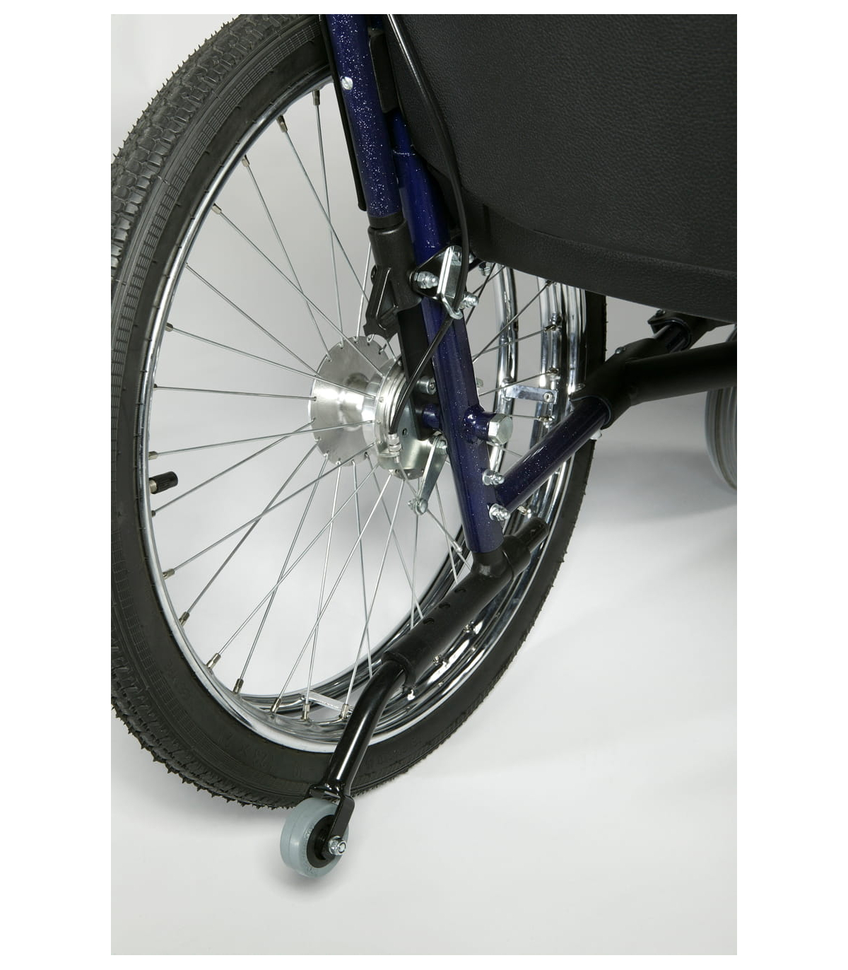 Le fauteuil roulant manuel Eclips XXL est conçu pour supporter jusqu'à 200 kg grâce à ses roues arrière renforcées.