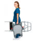 Grâce à ses deux roues, elle permet de limiter les transferts du patient, du lit au fauteuil, au fauteuil roulant, à la chaise percée...