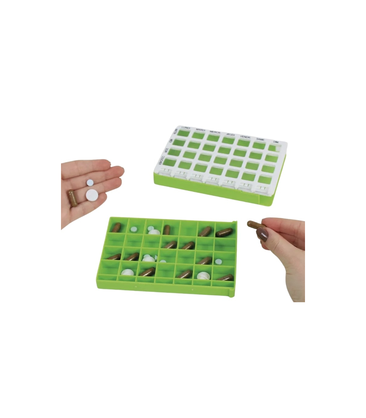 Ce pilulier Dolcimo Classic de teinte vert pomme, combine design contemporain et repérage facile, que ce soit à la maison ou en milieu médical. Il se remarque tout en restant sobre.
