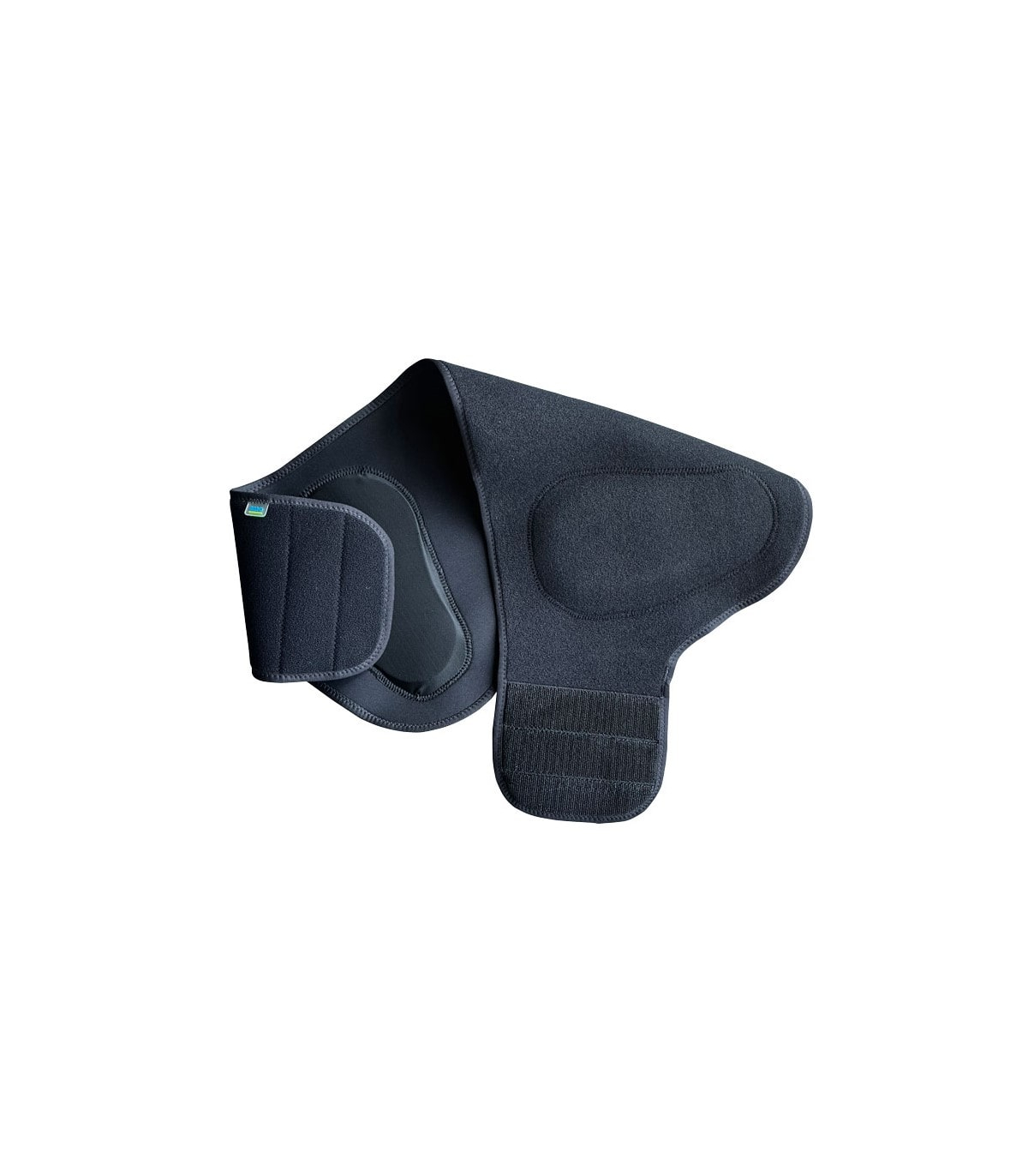 La ceinture de protection se met facilement grâce à sa large bande auto-agrippante et se porte par-dessus les vêtements au niveau des hanches.