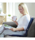 De plus, le coussin lombaire ergonomique Dorsaback de couleur bleue est muni d'une sangle d'attache positionnée sur le dossier, ce qui permet de le fixer solidement à la plupart des fauteuils.
