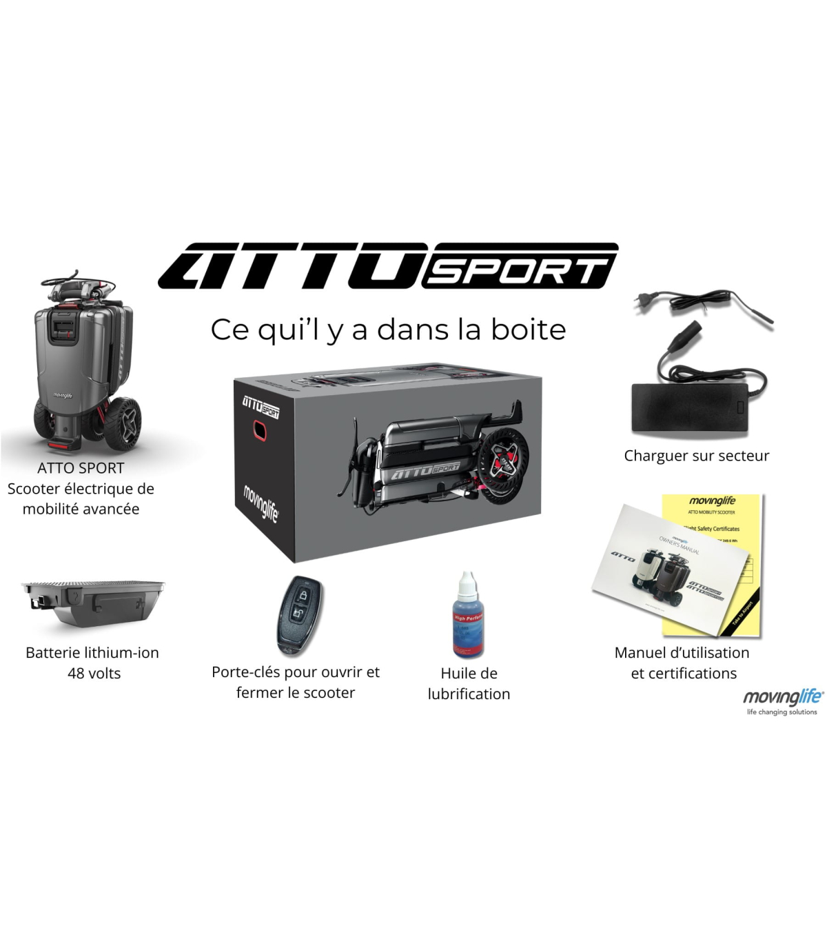 Les caractéristiques du scooter électrique 3 roues PMR pliable Atto Sport