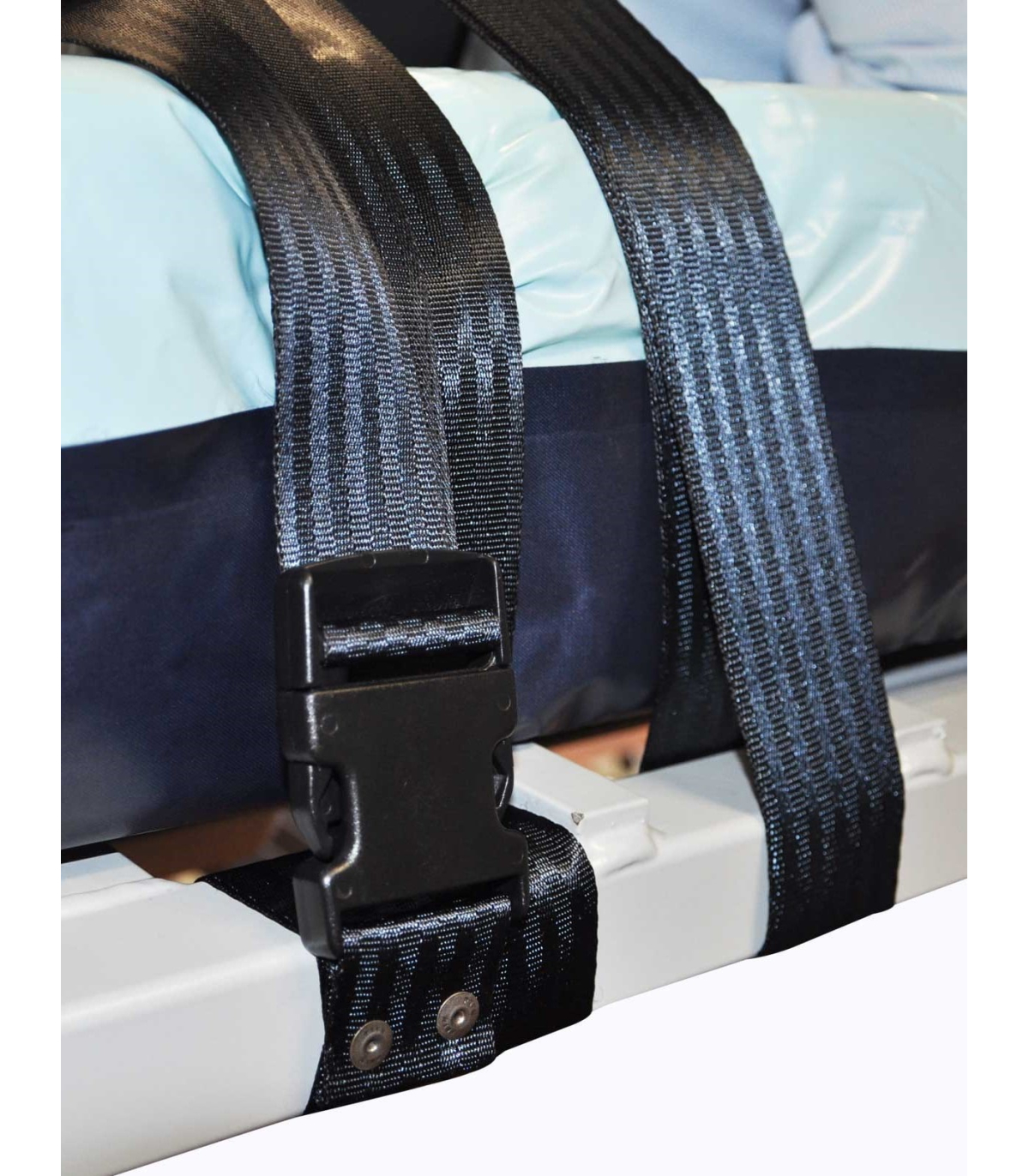 En outre, la ceinture de contention au lit est fabriquée avec des matières de qualité : Jersey polyester enduit de polyuréthane doublé de mousse, biais et sangles 100 % polyester, et boucles en nylon pour une solidité et un confort optimal.