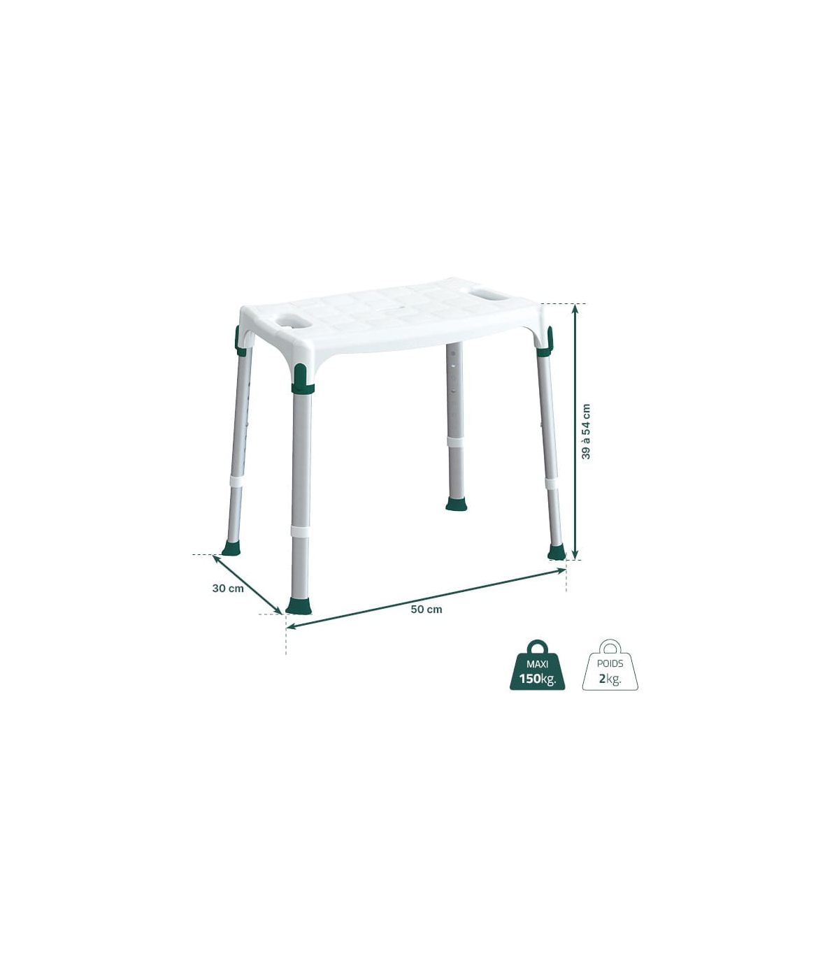 Tabouret de douche médical antidérapant avec poignées Capri