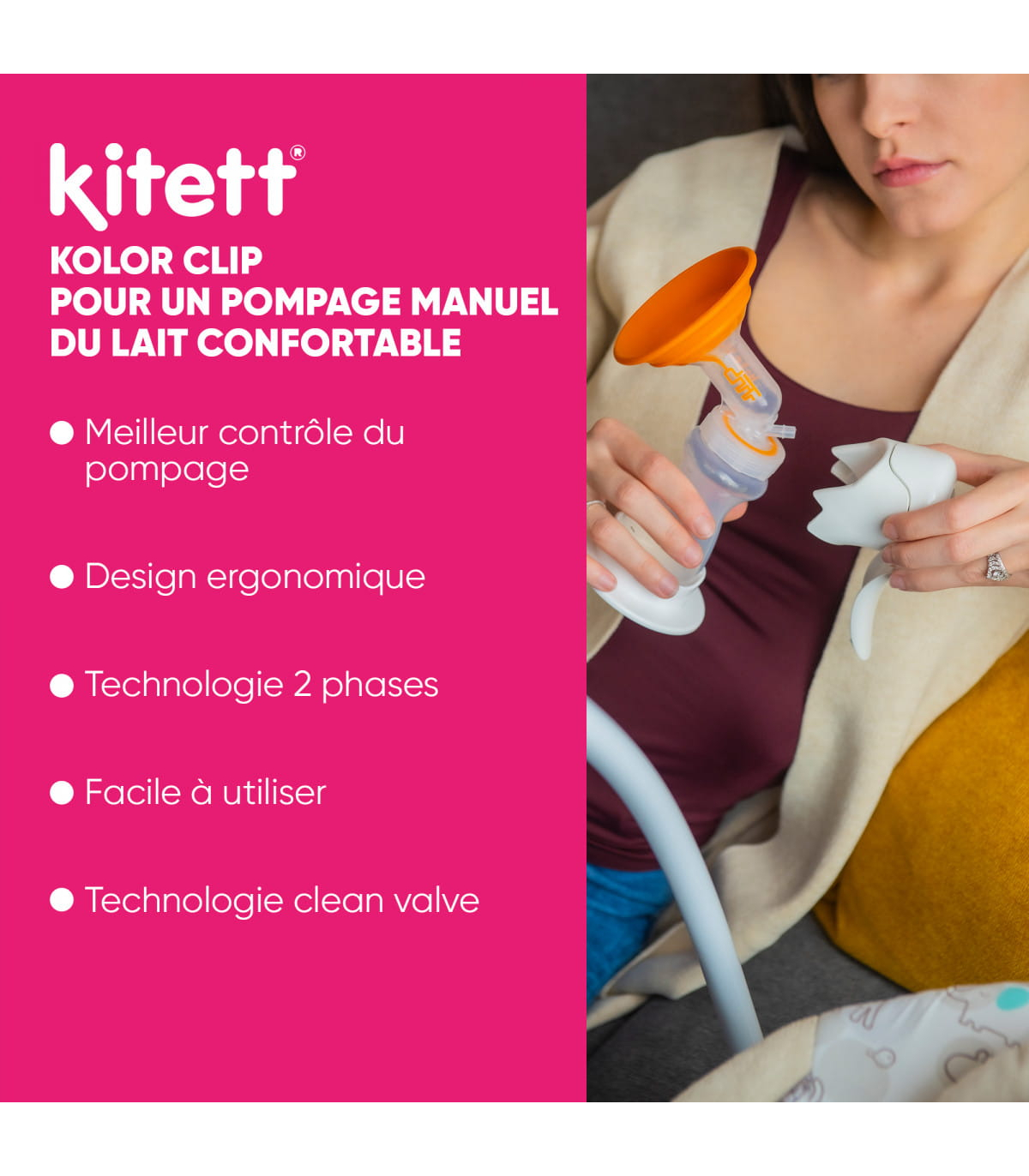 Livraison rapide de votre poignée ergonomique Kolor Clip pour tire-lait manuel Kitett