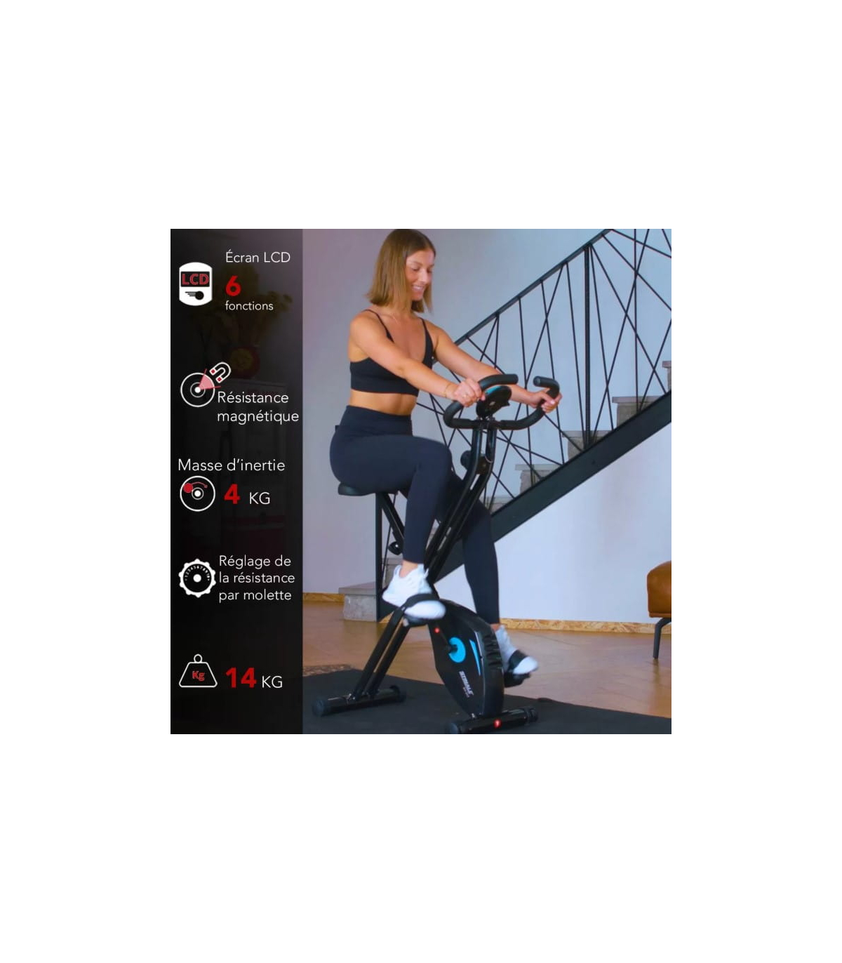 En outre, il est équipé d’une roue d’inertie de 3,5 kg pour un pédalage fluide et silencieux. La résistance magnétique réglable sur 8 niveaux, combinée à la transmission par courroie, assure un training efficace pour le cardio, la musculation et le biking. Les pédales lestées améliorent le confort et la stabilité lors de chaque séance.
